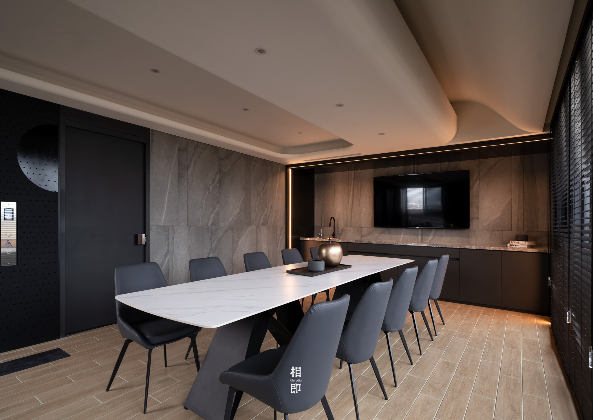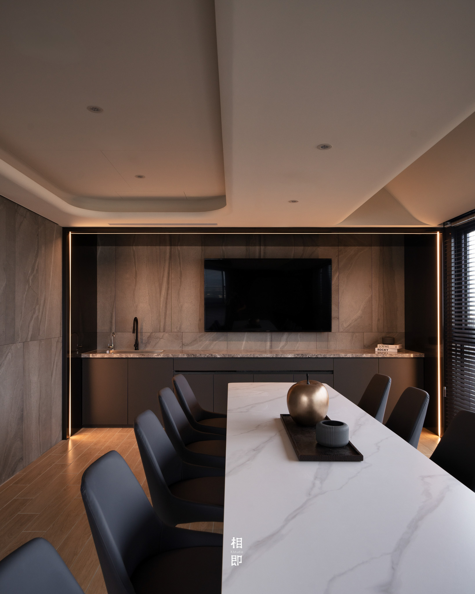 深色調的空間基底搭配圓滑的弧線,