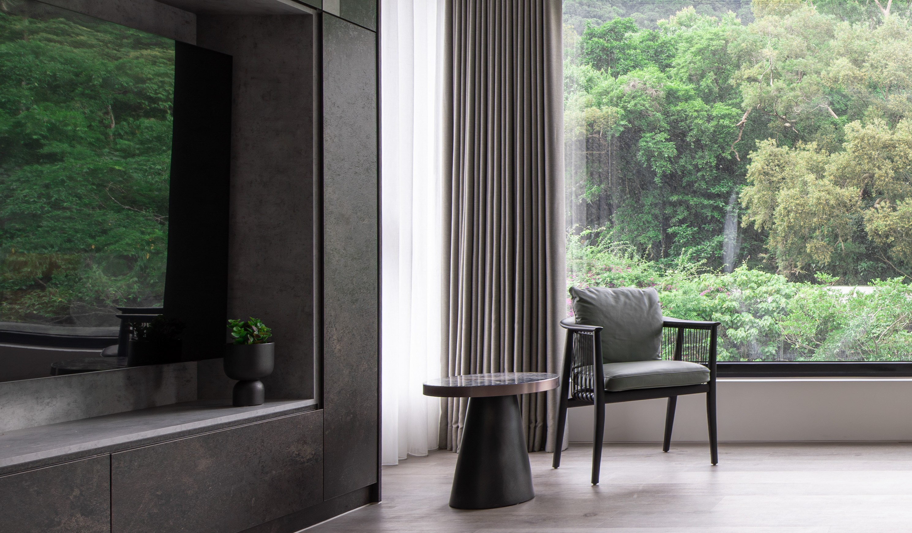 靜翠山居 by xjstudiopress on 十二月 30, 20252025-12-31 天然石材和鍍鈦柱體構築玄關端景,錯落柱體勾勒出自由動線,讓居家場景更為活潑靈活。 銜接室外的立面飾以玻璃,引景入室,讓緣意與光線滲入室內。 餐桌與餐脆底牆的石材互映,凝聚視覺的平衡。緣色石材與灰階櫃體共創沉靜內斂的廚房調性。 在這座被群山與溪流環抱的家宅中,建築不再只是框架,而是充滿感知的舞台,既回應四季更迭,也容納家人間的細微情感。 分享此文: 分享到 Facebook(在新視窗中開啟) Facebook 分享到 X(在新視窗中開啟) X Email a link to a friend(在新視窗中開啟) 電子郵件 喜歡 正在載入... 文章分頁導航 Previous: emma 林淑娟Next: 汯宸企業總部